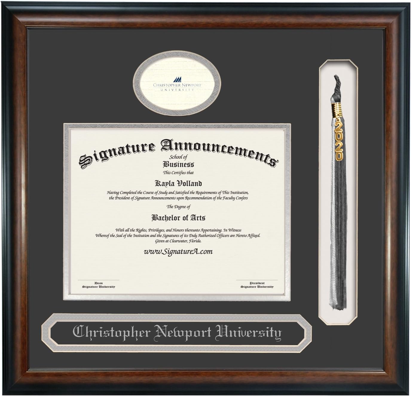Amazon Com Signature Announcements Christopher Newport University Undergraduate Sculpted Foil Seal Name Tassel Graduation Diploma Frame 20 X 20 Matte Mahogany Sports Outdoors